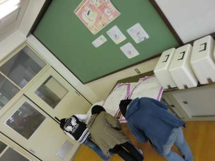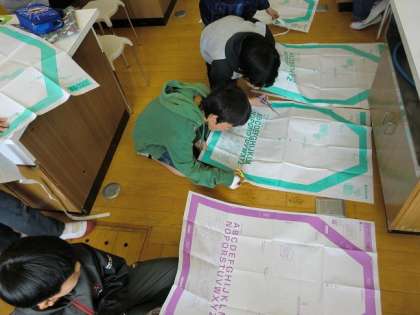 今日からエプロン作りが始まりました。それぞれが気に入ったデザインの布地を注文し、型どりをしています。