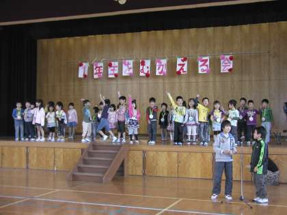 新しい1年生を全校のみんながあたたかく迎える会を行いました。歌や合奏,クイズ等各学年の出し物に1年生もにっこり。この日のために各学年が短い期間でしたが練習してきました。1年生は舞台で一人一人大きな声で自己紹介ができて、みんなが感心しました。児童会の代表委員も会をしっかり進行することができたのはさすがでした。この日、毎日登下校でお世話になっている「見守り隊」の方々の紹介もできました。ここちよいあいさつから一日を始めたいと思っています。1年生は、緊張していましたがとてもうれしそうで楽しいひと時が過ごせました。
