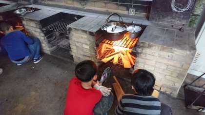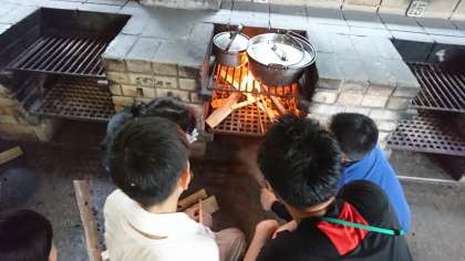 野外炊事は大成功。ご飯もおいしく炊けました。