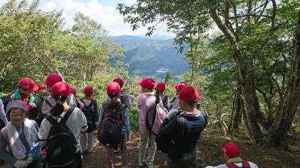 山の家が見えます。みんなでヤッホーを叫びました。山の家に声が届きました。山の家からのがんばれーも聞こえてきました。感動です。