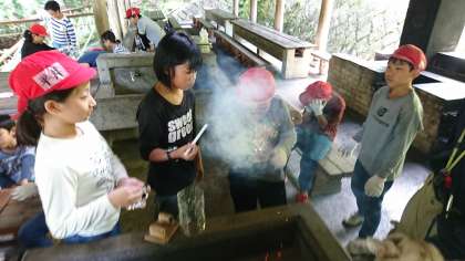 このあとの野外炊事は,各自が起こした火を使って調理します。