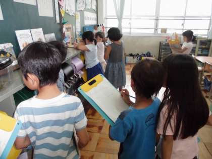 「やぶいたかたちからうまれたよ」の作品を見て,「いいな」と思ったところを紙に書きました。友達の作品や自分の作品をじっくり見ながら取り組む姿がすてきでした。「次の作品ではこうしたい!」と,早速次回の作品作りへとやる気を高めている子もたくさんいました。