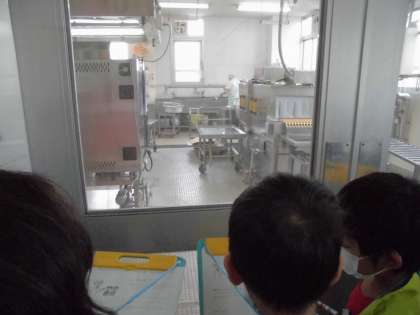いつも食べている給食がどのように作られているのか,給食室を少し見学させてもらいました。
