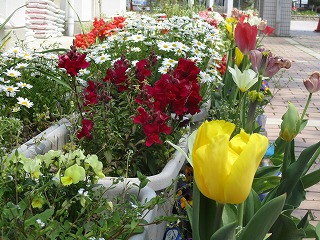 「早く笑顔と元気いっぱいの子どもたちに会いたいなあ。」校舎や校庭に子どもたちの声が響き渡る日を心待ちにする花たちの声が聞こえてくるようです。