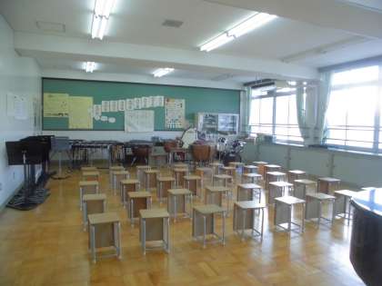 音楽を聴く学習をしたり,楽器を使う学習をしたりします。部活動のミュージックバンドが練習するときにも使います。