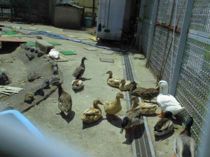バスの横には「どうぶつ村」があります。ここにはアヒルとカモがたくさんいます。餌を食べるときは勢いよくみんなでつついて食べます。またみんなで見に行きましょう。
