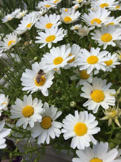 学校の中庭には,ノースポールなど,たくさんの植物が植えられています。