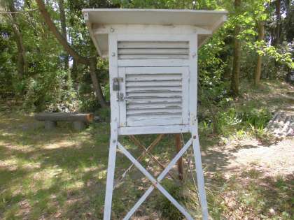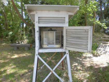 とびらを開けると,中は下の写真のようになっていて,自記温度計で連続して気温を記録することができます。