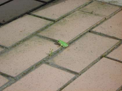 今朝苗にお水をあげようとしたら,何かがぴょんと跳び出してきました。何か分かるかな?