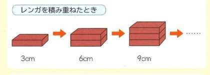 1個の時の全体の高さは3cm