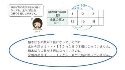 なので,植木ばちの数と高さは比例にはなっていません。