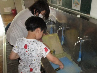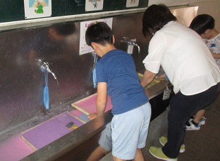 アジサイの花に色をつけたあと,2年生と3年生が後片付けをしてくれました。「ぼくたちにまかせてね」という感じで自分からしてくれる様子を見て,「さすがだなあ」と感心しました。