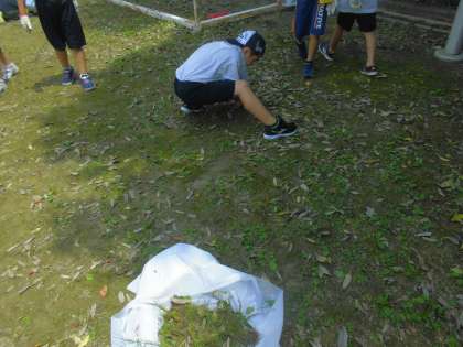 お昼ご飯を食べてから,草引きをしました。短い時間でしたが,てきぱきと草を抜くことができました!