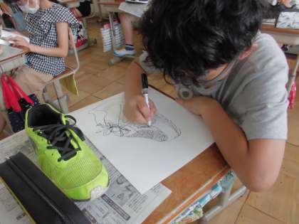 靴から見える一本一本の線をよく見て,丁寧に描いていきました。