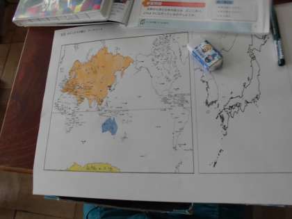 世界の中の学習内容をプリントにまとめています。