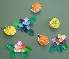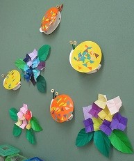 図工で作ったかたつむりとあじさいを教室にかざりました。すてきなあじさいにかわいいかたつむり。季節感あふれる教室になりました。