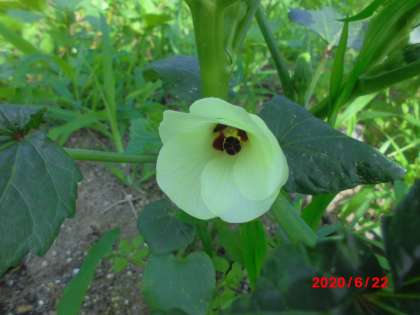 オクラの花も咲いていました。黄色い南国的なかわいい花です。実も早くなってほしいです。