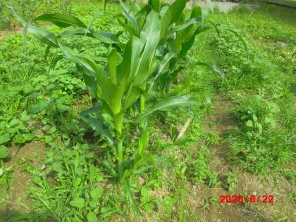 雨でしばらく行けていなかった畑にひさしぶりに行きました。すると,野菜がぐんと大きくそだっていました。とうもろこしは1年生のお友だちより大きくなっていました。