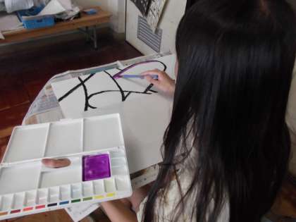 グラデーションをしたり,混色をしたりして丁寧に塗っていました。
