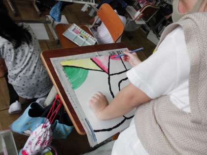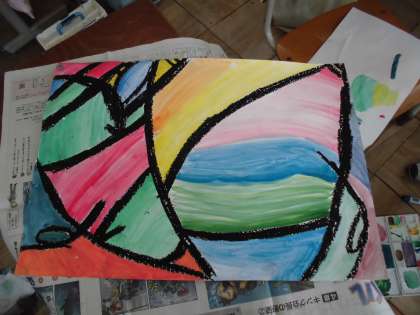 名前で絵をかき,絵の具で色を塗りました。