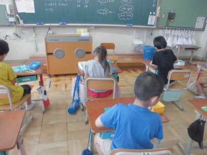 粘土をにぎった形からイメージを膨らませて作品を作りました。にぎる指の本数や,にぎる場所を変えながら,様々な形を作ることができました。