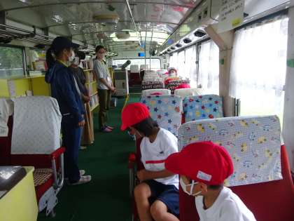 PTAの方にお世話になり,6月26日から「ゆうゆうバス」がスタートしました。26日は1年1組,7月1日は1年2組がグループごとにバスの座席に座り,PTAのお母さんからゆうゆうバスの約束や本の借り方などについてお話をしていただきました。次に借りるのが楽しみになりました。