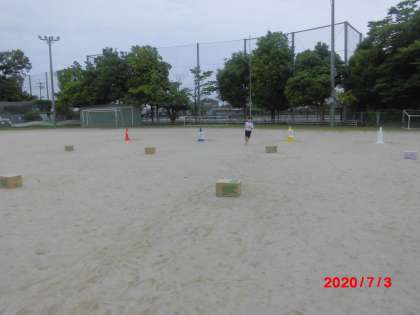 1年生リレーあそびでは,くねくねリレー,ぐるぐるリレー,ぴょんぴょんリレーをたのしんでいます。チームで競争していることも少しずつわかってきて,「はやく!」などと応援したり,よこのチームをちらっと見ながら走るなどの様子も見られます。チームの友だちと協力して準備や片付けもがんばっています。