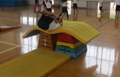 ねらいに合わせた練習の場をつくりながら,より高い段やより多くの跳び方をマスターできるよう,頑張っています!