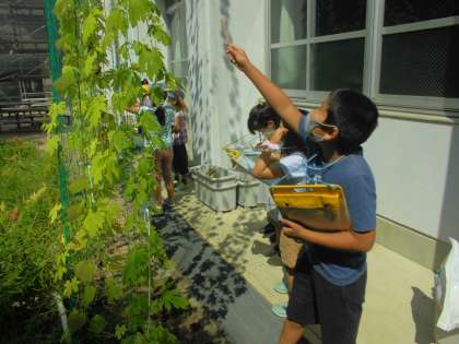 草たけは,校舎の2階ぐらいまで伸びていて,子どもたちは「夏休みの間にとても成長している!」と驚いた様子でした。