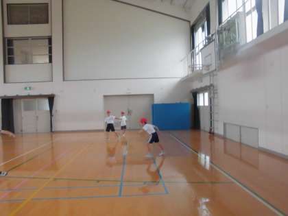 体育で,リズムあそびとバトンパスの練習をしました。リズムあそびでは,スイミーの気持ちを想像しながら体の動かし方を考えました。バトンパスの練習では,友達と声をかけあって取り組むことができました!