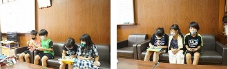 4年生が国語科の学習「新聞づくり」で校長室に訪れ,取材をしました。