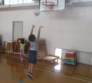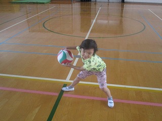 週に1時間,3組では体育館で活動をしています。今日はボールを使って,投げる,パスをし合う,ゴールにシュートをするなどの運動をしました。子どもたちはボールが大好き。手や腕,全身を使って体をいっぱい動かしていました。