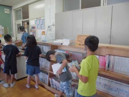 図書館に行って,本を借りました。少しずつ文字の多い本を読むことができるようになってきて,読書の幅が広がっているように感じます。さすが2年生ですね!