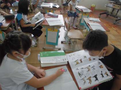 国語の授業で,仲間の言葉集めをしました。困ったときには図鑑や本を見ながら,たくさんの言葉を集めることができました。