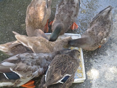 5時間目にどうぶつ村に行ってあいがもにえさをやったり,教頭先生にあいがものことをインタビューしたりしました。
