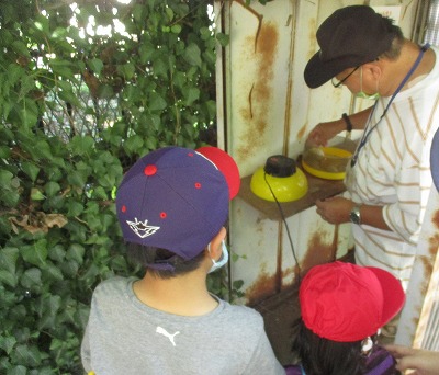 次に教頭先生にインタビューをしました。大好きなえさやオスとメスの見分け方,たまごについて教えていただきました。最近産んだたまごも見せてもらいました。