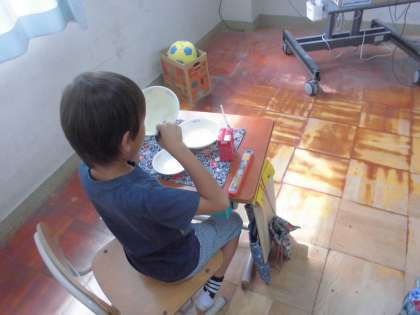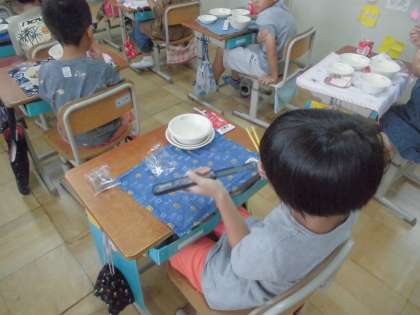 今日の給食はなごみ献立でした。冬瓜のくずひきは,とろみがあって飲みやすく,積極的にお代わりしていました。おはぎも付いていて,優しい甘さでゆっくり味わって食べる子がたくさんいました。