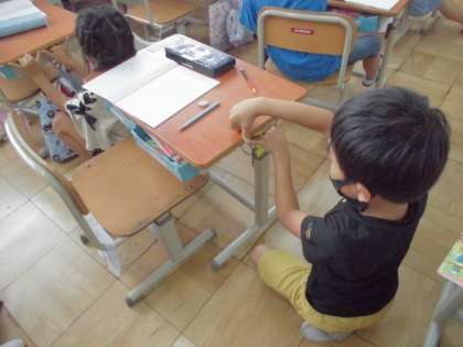 昨日は自分の手がいくつ分の大きさかどうかを調べてみました。いろいろな物を「なにかのいくつ分」で表わすことができるということが分かりました。