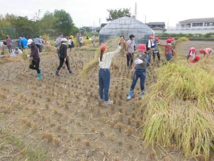 稲刈り頑張りました。稲を手際よく刈っていました。また友だちと協力して活動する姿も見られました。最後までよく頑張りました。
