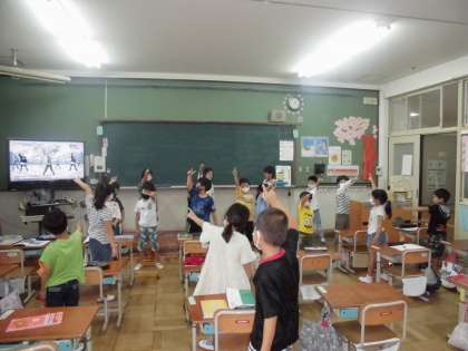 体育参観日の準備運動「EXダンス」の練習を頑張っています。