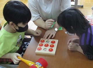 中間休みに教室においてあるゲームを使って遊びました。「絵合わせゲーム」や「じゃんけんゲーム」など夢中で行う子どもたち。ゲームをしている子どもも見ている子どもも笑顔が多く見られた時間でした。