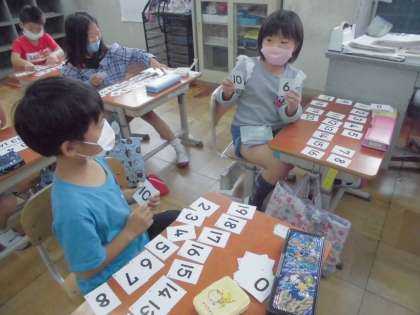 今日は,「10といくつ」「18は10と8」など,10といくつなのか,カードを使って学習しました。友達と問題を出し合ってたくさん練習しました。