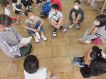 たてわりグループごとに分かれて,顔合せをしました。自己紹介をした後は,6年生が考えてくれたゲームをしながら交流を深めました!明日のたてわりロング昼休みも楽しみですね。
