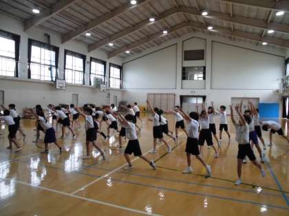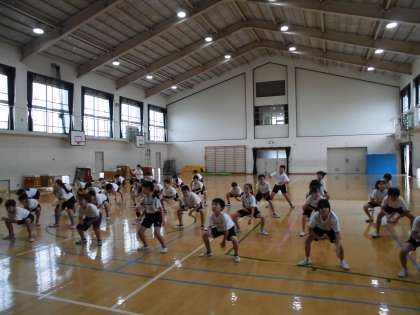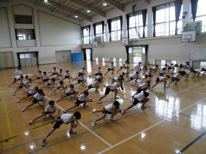 姿勢を低くして踊ることは,とても難しいですが,みんなとても真剣に踊っています。