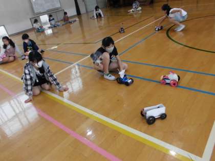 うちわであおいでみたり,ゴムの力で走らせてみたりと,みんな夢中で走らせていました!