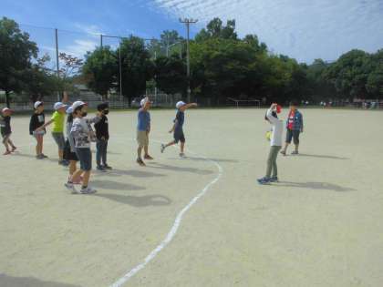 今日のみんなあそびは,転がしドッチボールをしました。転がってくるボールをよく見て,上手によけることができていました。外野の子は,取ったらすぐに転がす,を意識して楽しく遊ぶことができました。