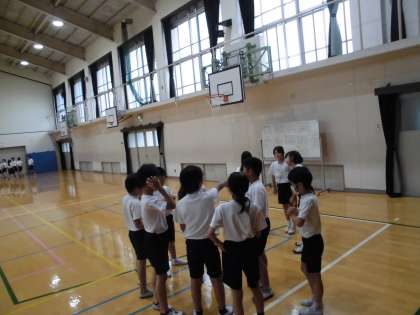 学年リレーに向けて,各色のグループごとに,走順を話し合いました。