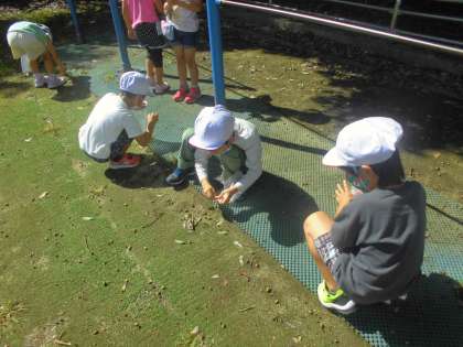 ここの学習のゴールでは,秋の素材を使ったおもちゃを作ってみんなで遊ぼうと思っています。ゴールに向けて,たくさん「秋」を見つけに行きました。