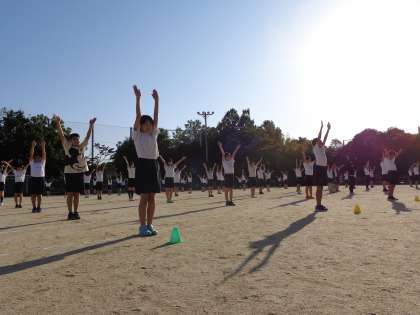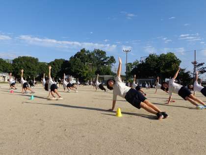 体育の学習では,体育参観日に向けて表現運動の練習に励んでいます。
