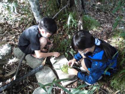「小人のすみかをつくろう!」と子どもたちと計画し,命の森で活動しました。